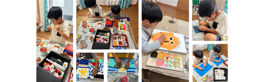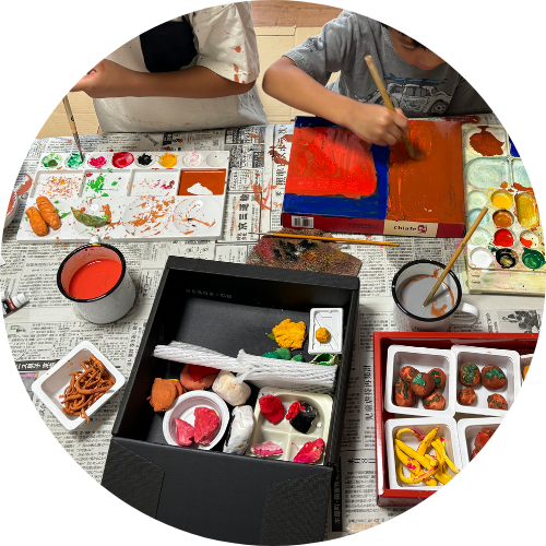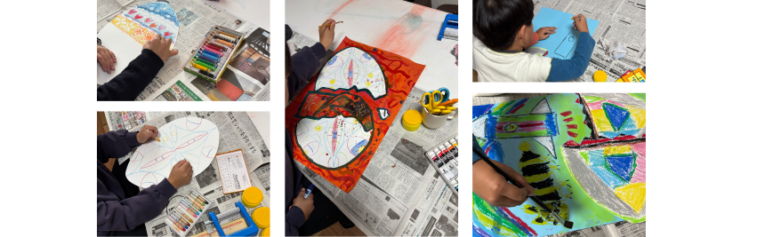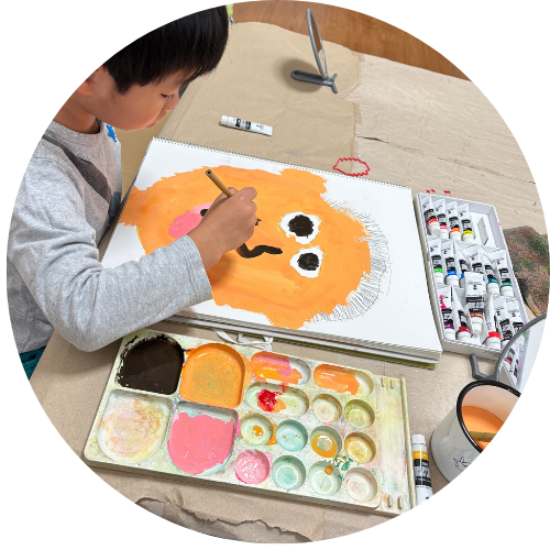絵画や立体工作など、いろいろな表現をいろいろな画材を使って創造していきます。