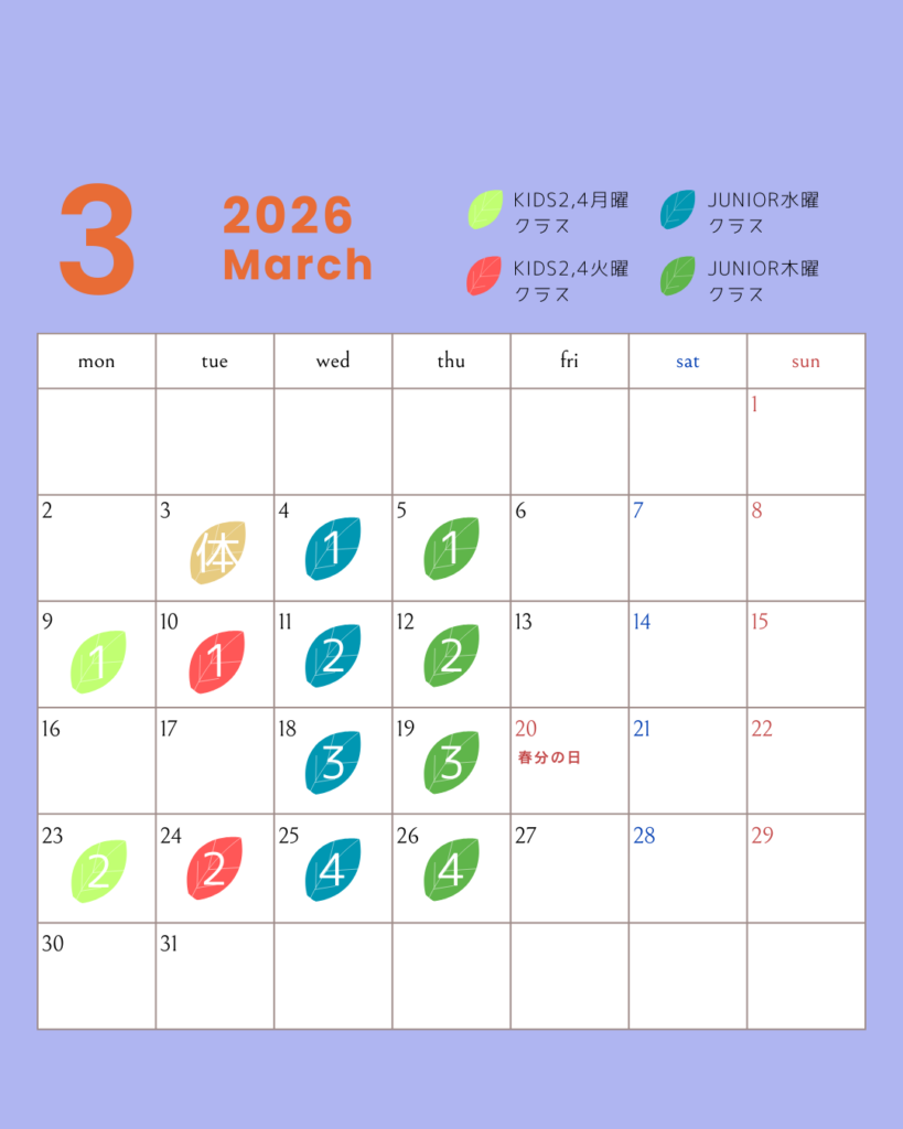 3月開講予定のKIDSコース1,3火曜クラスを開講延期とします。